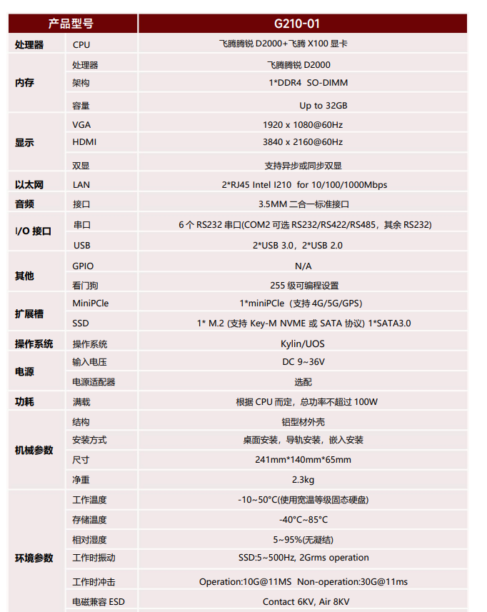 飞腾D2000国产高性能处理器的嵌入式BOX工控机